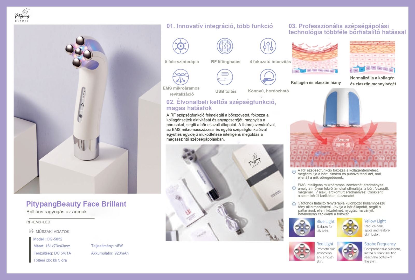 - 3 funkcióval segíti az arc-nyak-dekoltázs ráncainak, barázdáinak, megereszkedésének látható javulását